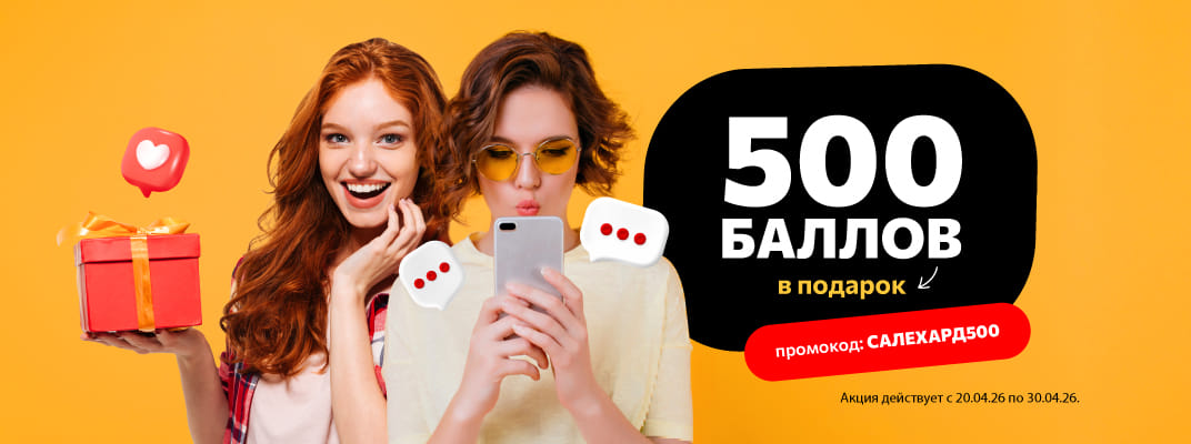 Дарим 500 баллов на бонусный счет. Никаких дополнительных условий: получайте подарочные бонусные рубли и оплачивайте ими свои любимые блюда с выгодой до 30%.Промокод: САЛЕХАРД500 (не забудьте использовать его в момент оформления заказа)